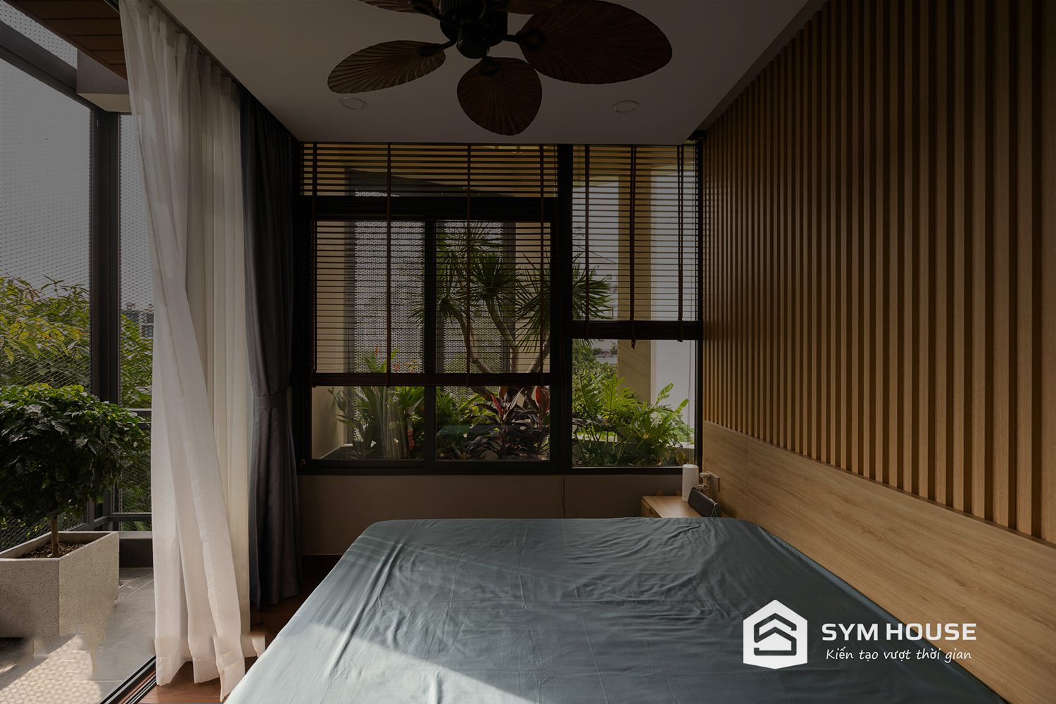Gia chủ là người cực kỳ yêu thiên nhiên nên một trong những yêu cầu cơ bản đặt ra cho nhóm kiến trúc sư SYM HOUSE là tạo ra một không gian “đáng sống” nhiều ánh sáng, gió, cây xanh